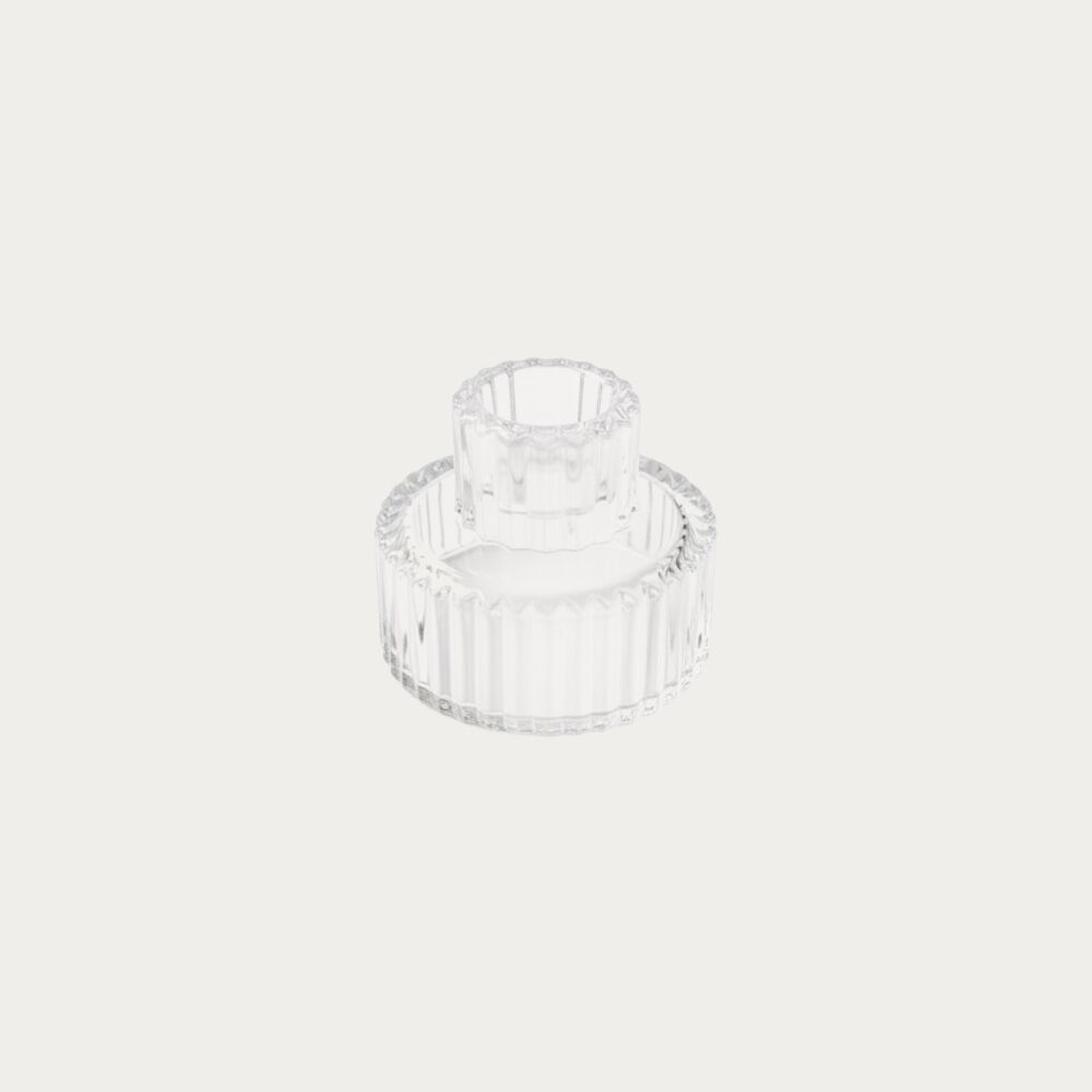 Oluklu yüzeyli cam mumluk.