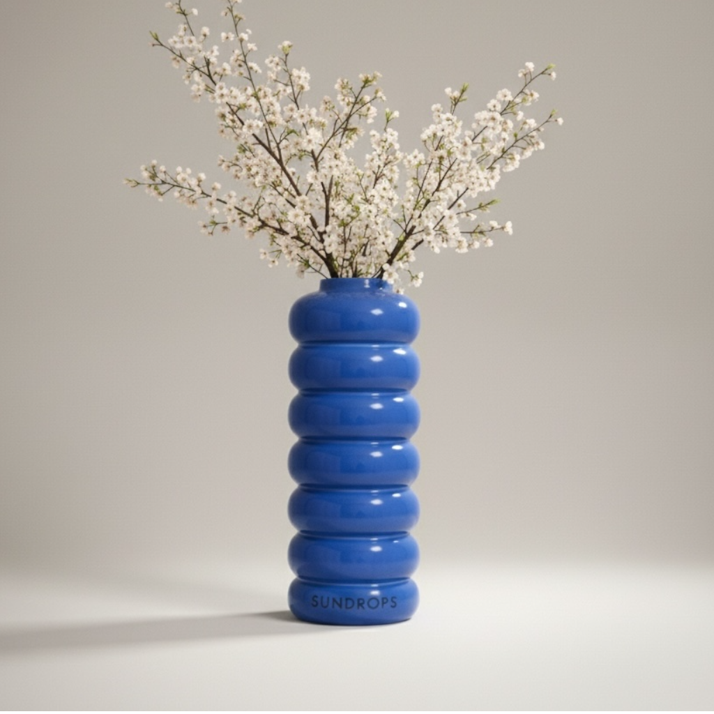 Pigment Serisi Cobalt Vazo, canlı pigment rengi ve katmanlı formu ile mekana bir karakter kazandırır.